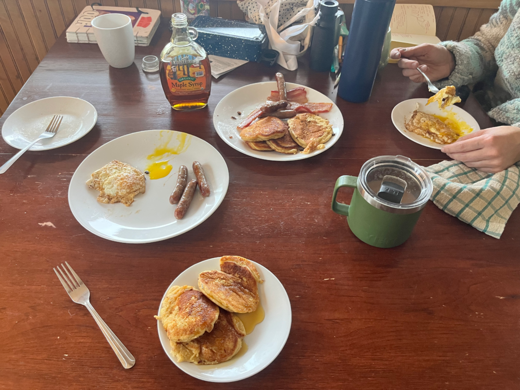 Retreats are powerful, and they don’t have to be expensive or fancy. This one was basically just three girl friends doing art and having a cozy little adventure. My two friends pictured above are also artists! Amanda does beautiful art with pen, ink, and watercolor. Kendra runs a podcast, draws, and sews. Find Amanda HERE and Kendra HERE.